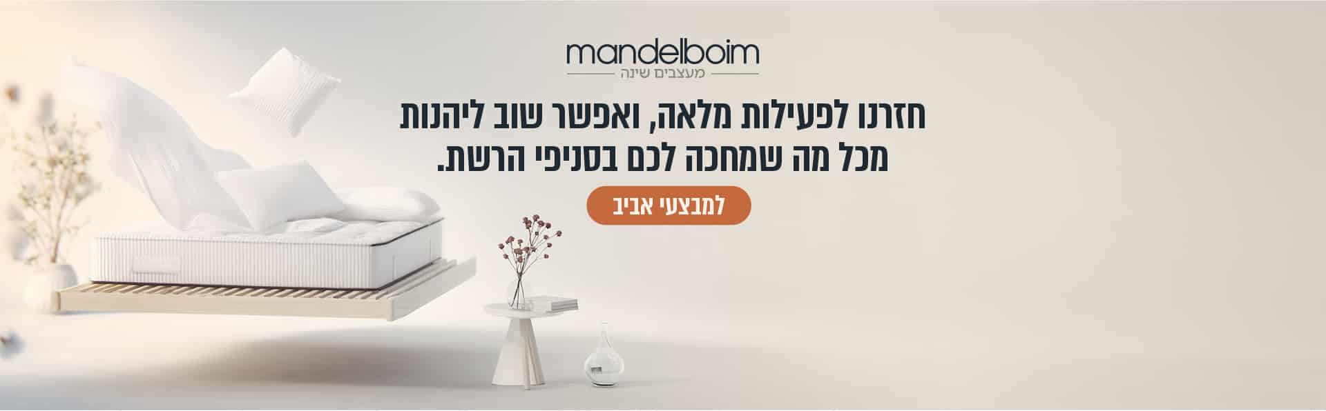 יותר מחצי מיליון ישראלים שבחרו מנדלבוים עזרו למומחי השינה שלנו לפתח עבורכם את שאלון ההתאמה.